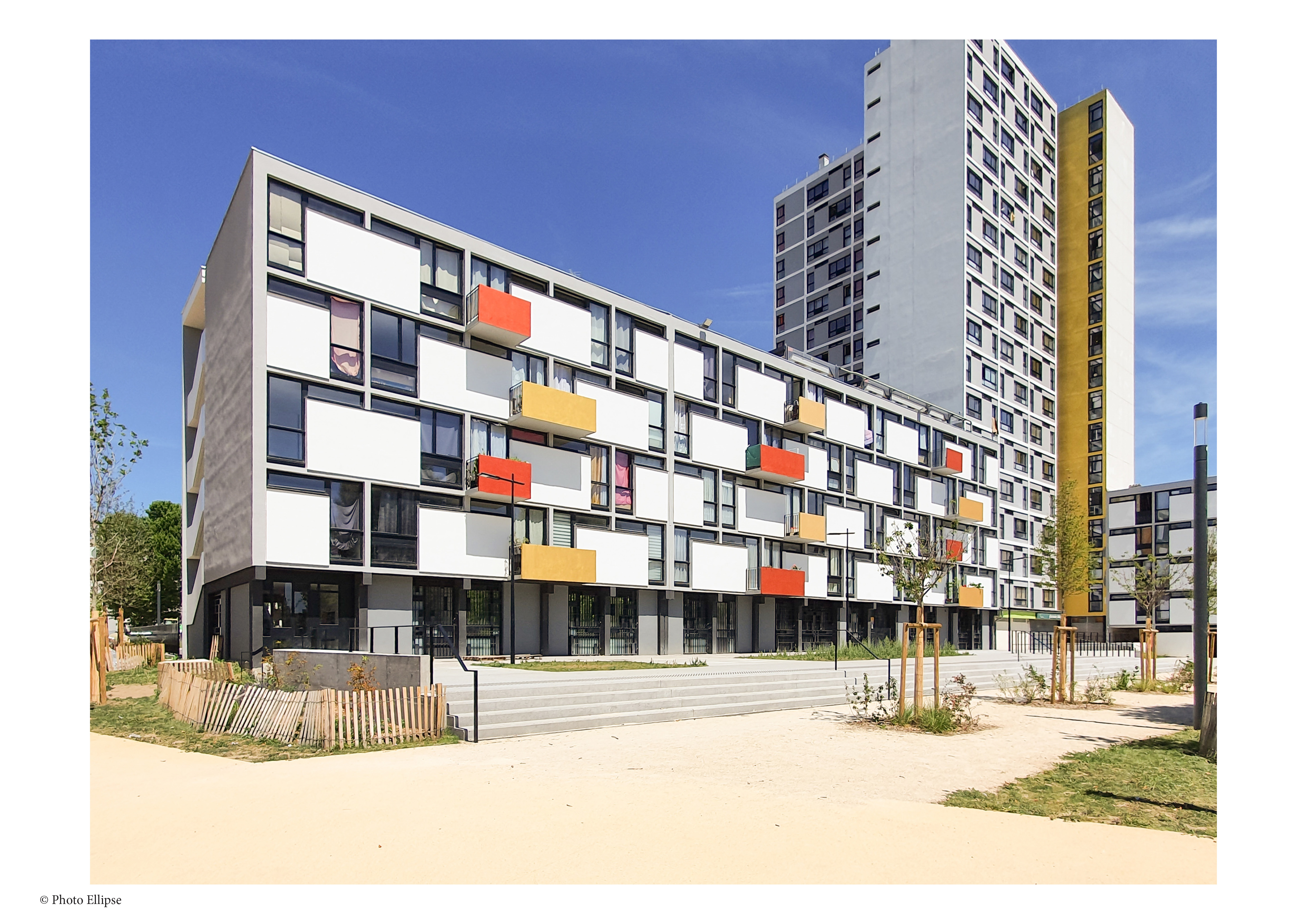 Le quartier de l’étoile à Bobigny dans le cadre d’une convention ANRU a fait l’objet d’une rénovation patrimoniale, complexe et ambitieuse, portée par le bailleur Emmaüs habitat et la Ville de Bobigny, livrée en 2023. Le projet conçu par l’équipe du le Groupe d’Architecture Ellipse a visé la mise en valeur des qualités esthétiques initiales de la cité de l’Étoile mais aussi leur mise en cohérence avec les qualités d’usage, les normes de confort et les exigences de sobriété énergétique et thermique.